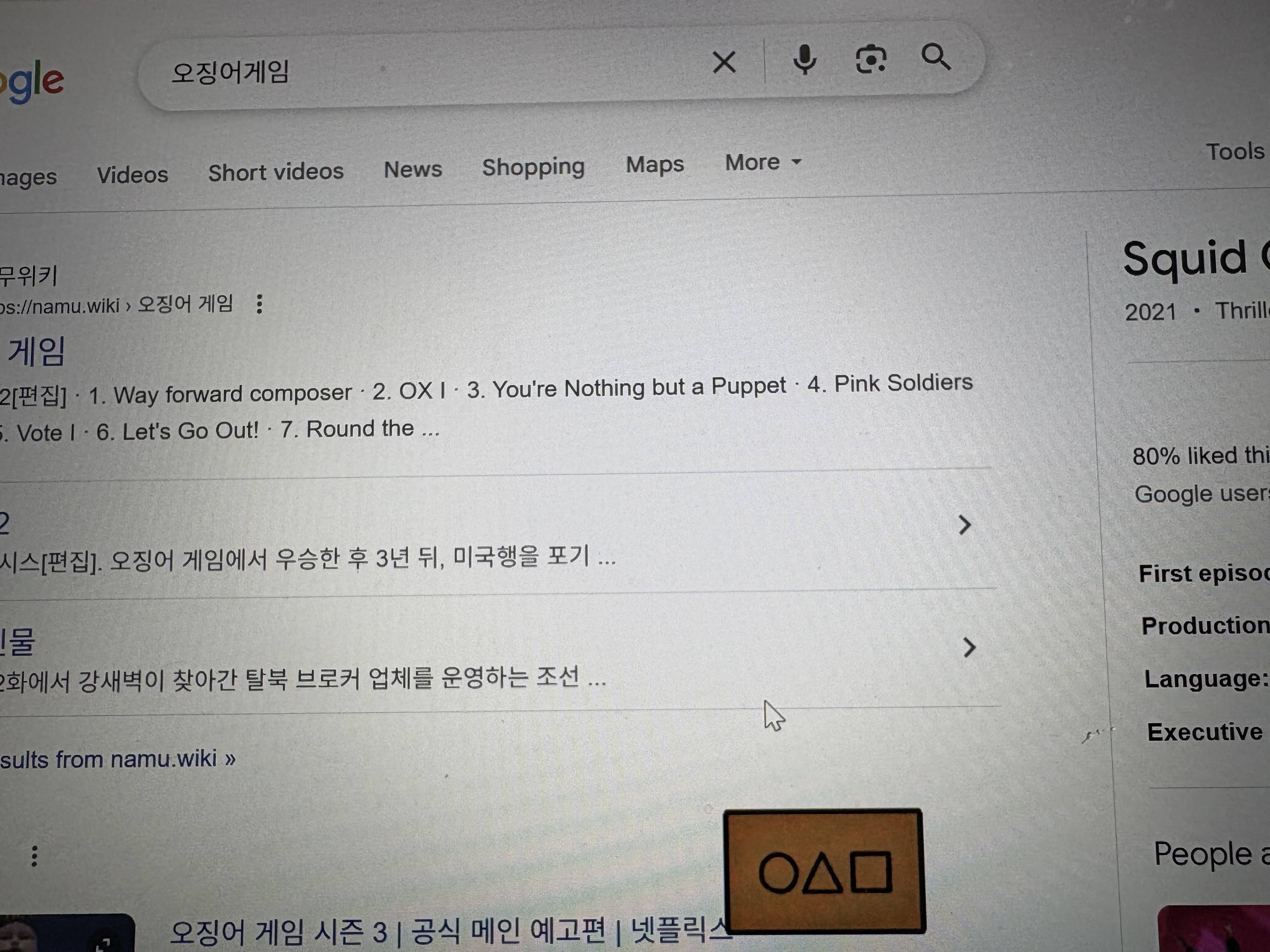 오징어게임3가 곧 공개된다는 소식을 접하고, 구글에 오징어게임3을 검색했는데, 사진과 같은 카드가 떴습니다.